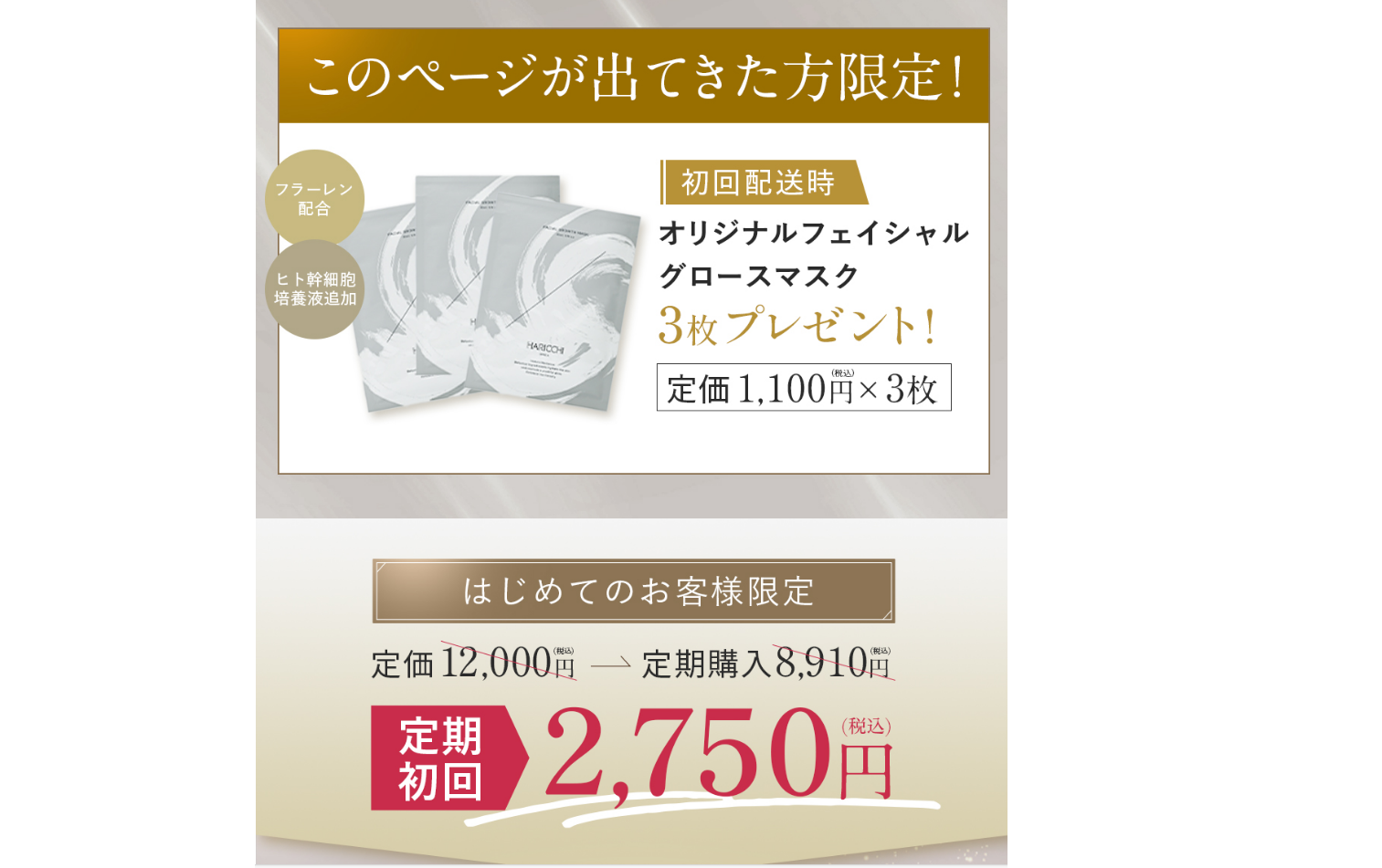 通常価格は1本12,000円(税込)。ただし初回定期購入キャンペーン中は1本目が50%OFFの6,000円(税込)でスタート可能。2本目以降も送料無料で8,400円(税込)と継続しやすい価格設定です。エステや鍼治療にかかる時間・費用を考えると、自宅で継続できる点は大きなメリットです。